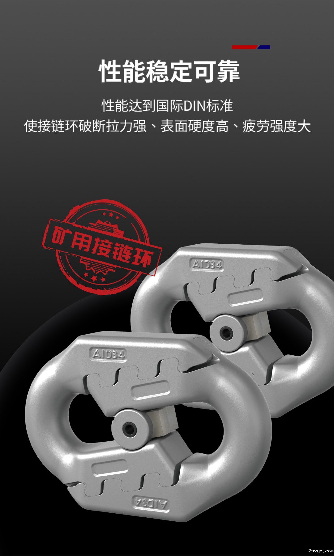 产品特性:悠米游戏平台扁平弧齿型接链环通过采用优质54合金钢材质,使用智能加工中心生产,经过自主研发热处理工艺等,让接链环具有高强度、高韧性、耐磨损、耐腐蚀、良好的冷弯能力、较高的破断拉力等综合机械性能。